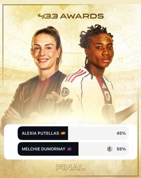 Après avoir éliminé des joueuses européennes de grand calibre comme Mariona Caldente, Aitana Bonmatí (triple Ballon d’or) et Claudia Pina, Melchie Dumornay a créé la sensation. Affrontant Putellas en finale, l’Haïtienne a terminé la course avec 55% des votes, contre 45 pour sa grande rivale ; ce qui fait d’elle la vainqueure de ce prix.