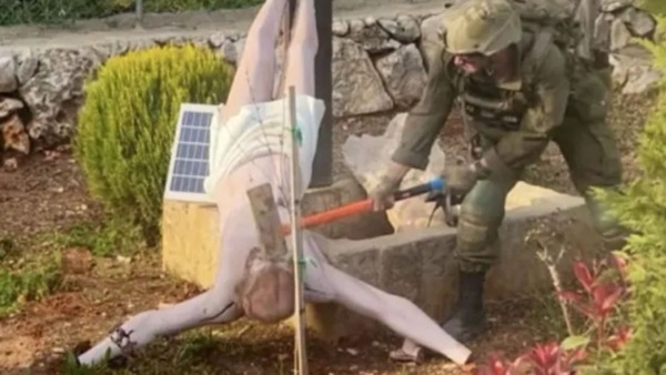 Un soldat israélien détruit une statue de Jésus-Christ, l’armée aux aguets